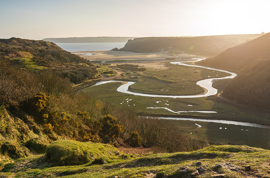 Uitzicht over de Three Cliff’s Bay en Penard pill rivier